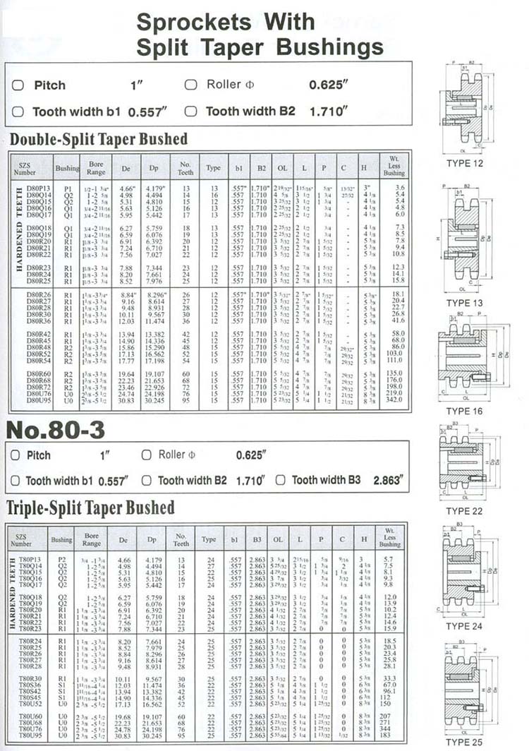 Sprockets With Split Taper Bushings NO.80-3