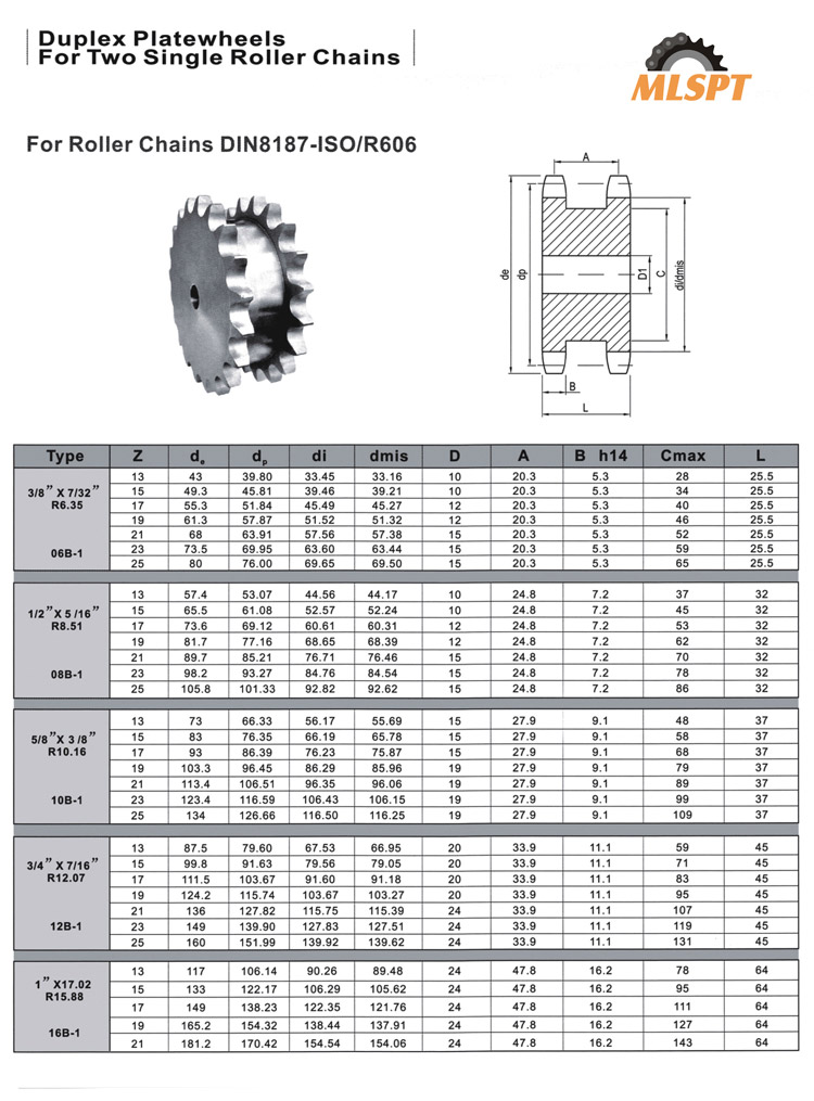 duplex platewheels for two single roller chains